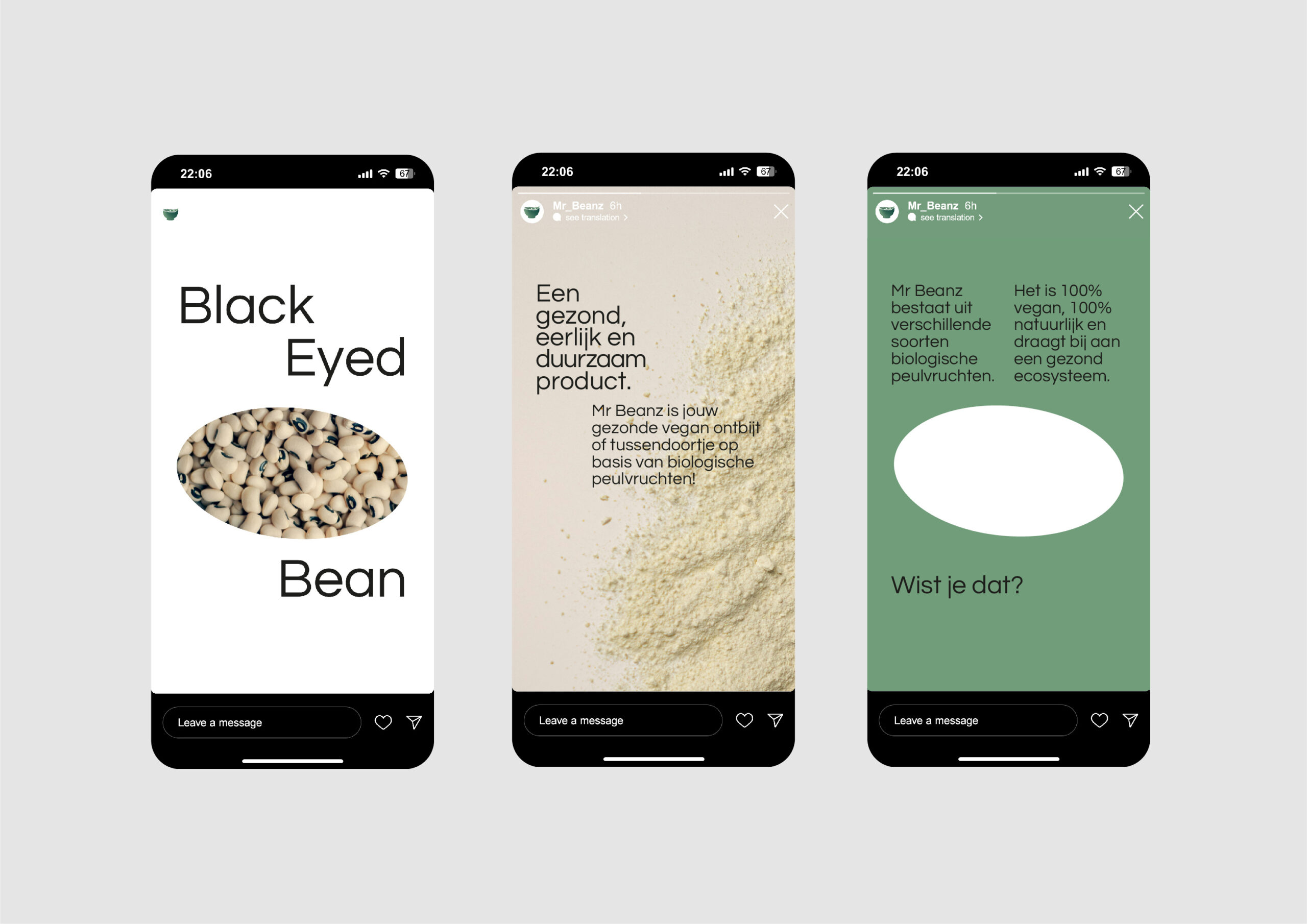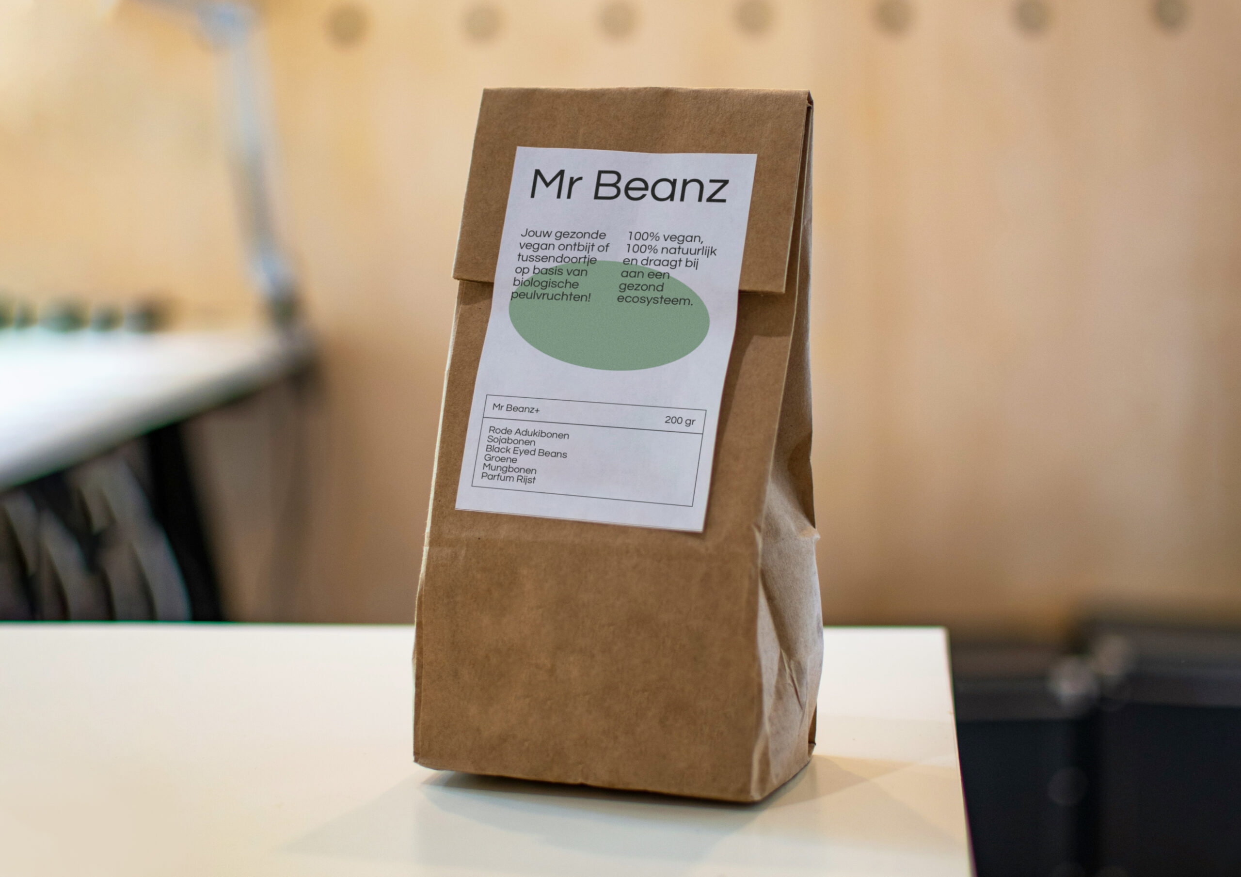 Info +Mr Beanz produces a healthy, sustainable and honest plant-based breakfast or snack. Composed of different types of beans, the products from Mr Beanz are packed with proteins and fiber. These nutrients are good for your guts and muscle building and they will boost your energy. The concept of having beans for breakfast was translated visually for the creation of the logo.